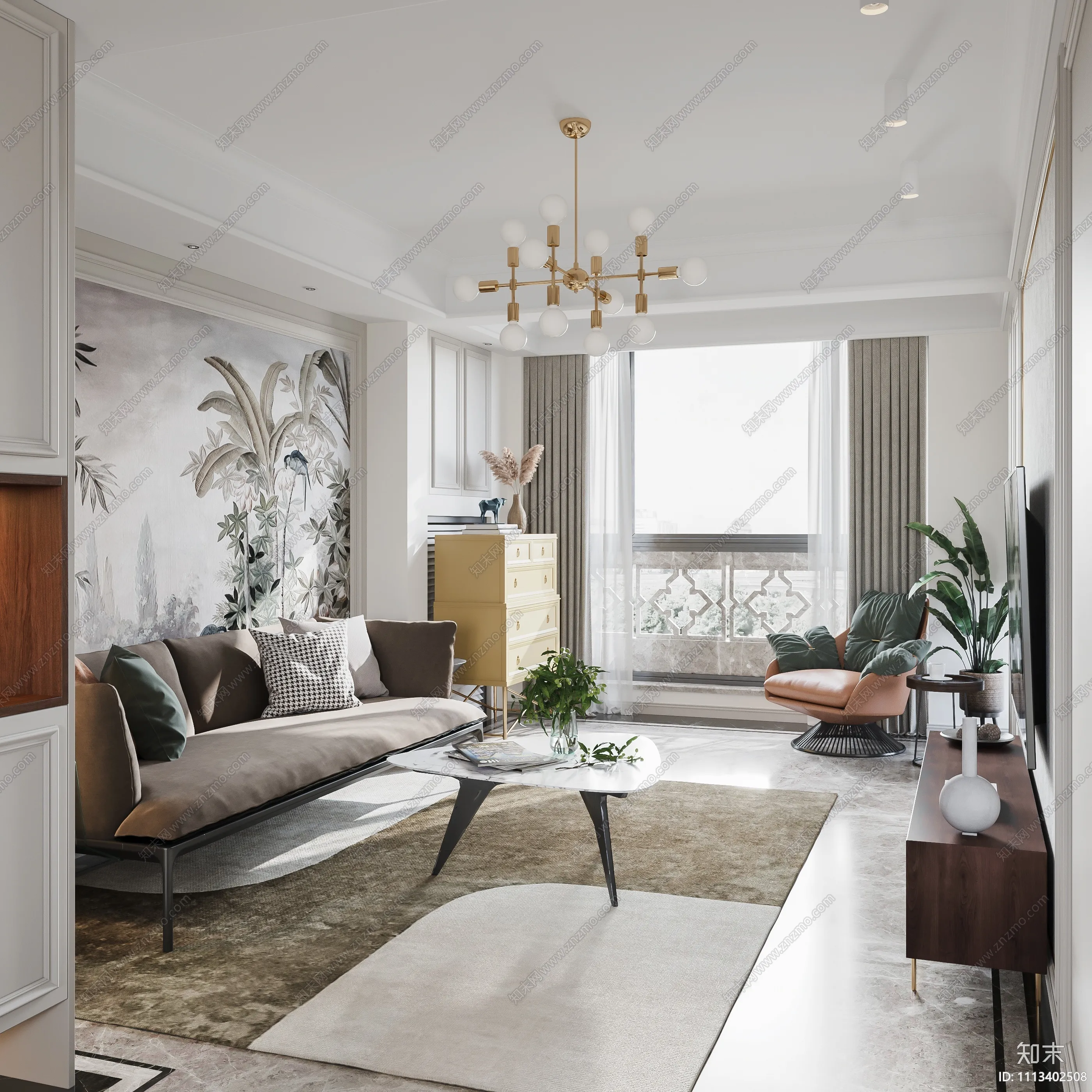现代美式平层效果图