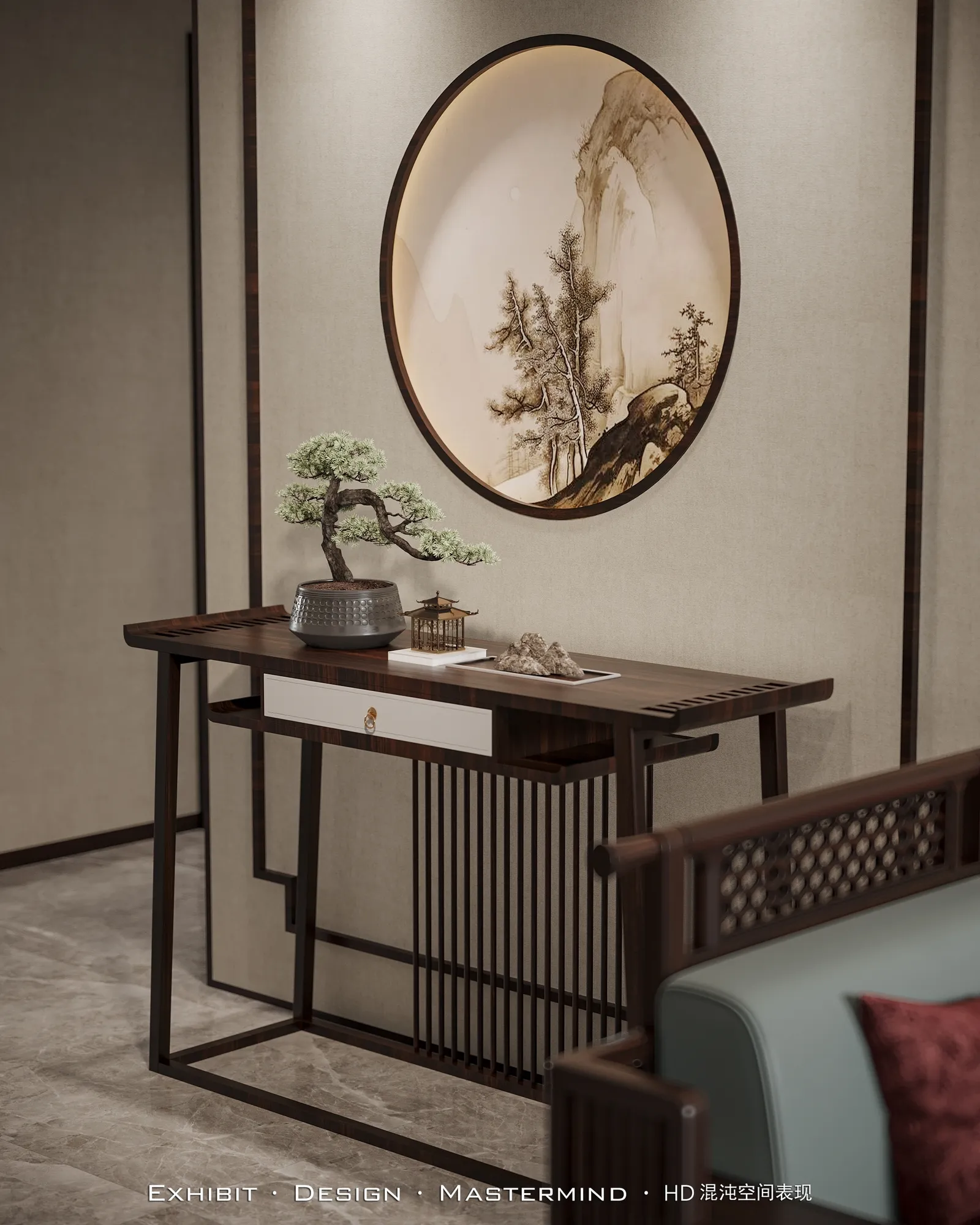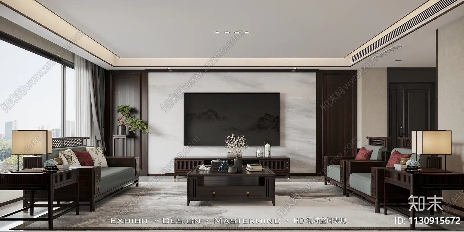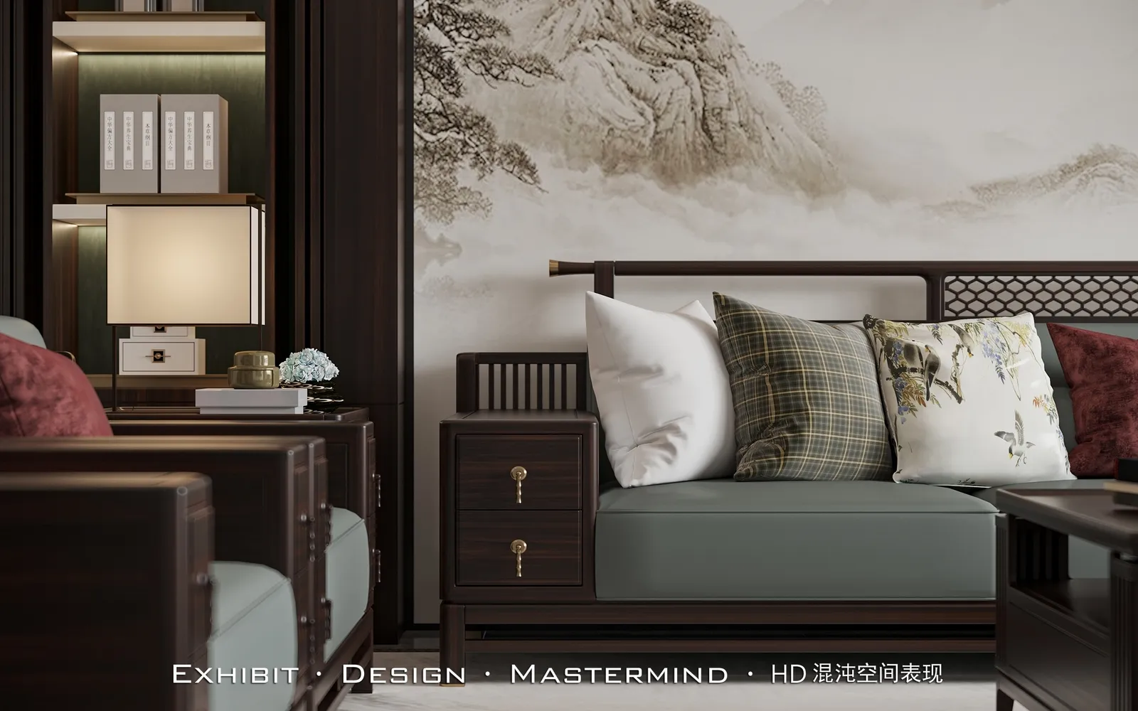 新中式风平层客餐厅 混沌空间视觉表现