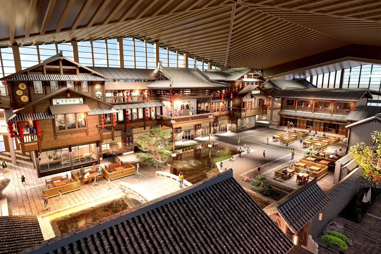 自己搭建了一个内部商业环境,保留了古代商业街的浓郁氛围,与现代建筑风格融为一体。希望大家喜欢!!