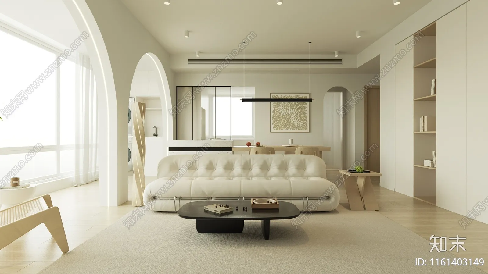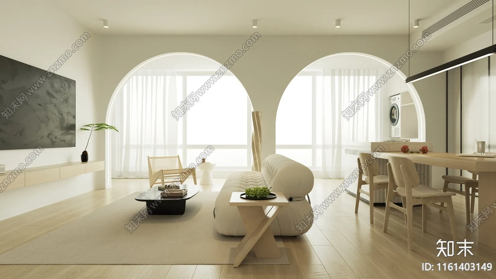现代奶油风客厅餐厅卧室厨房卫生间设计