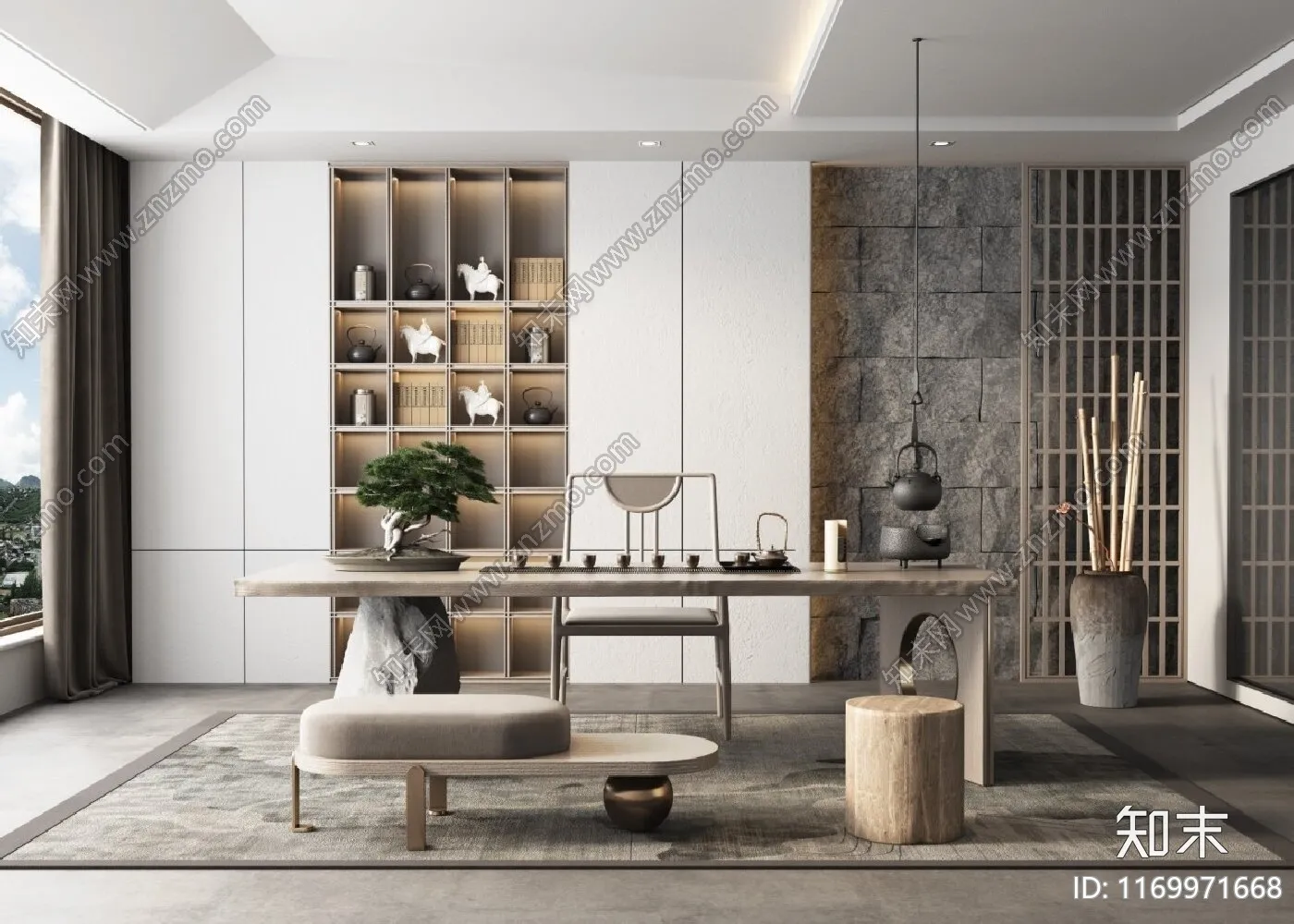 现代中式风格茶室室内设计效果图